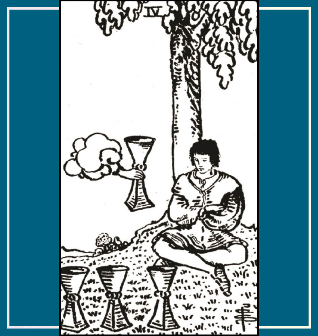 Bekers IV is een onbegrepen kaart. Dat is ook niet zo gek, want de beeldspraak is niet heel duidelijk. Wat duidelijk is, is dat een jongeman drie bekers heeft leeggedronken en vervolgens een vierde beker afslaat. Gaat dat over ondankbaarheid? Ik denk van niet.